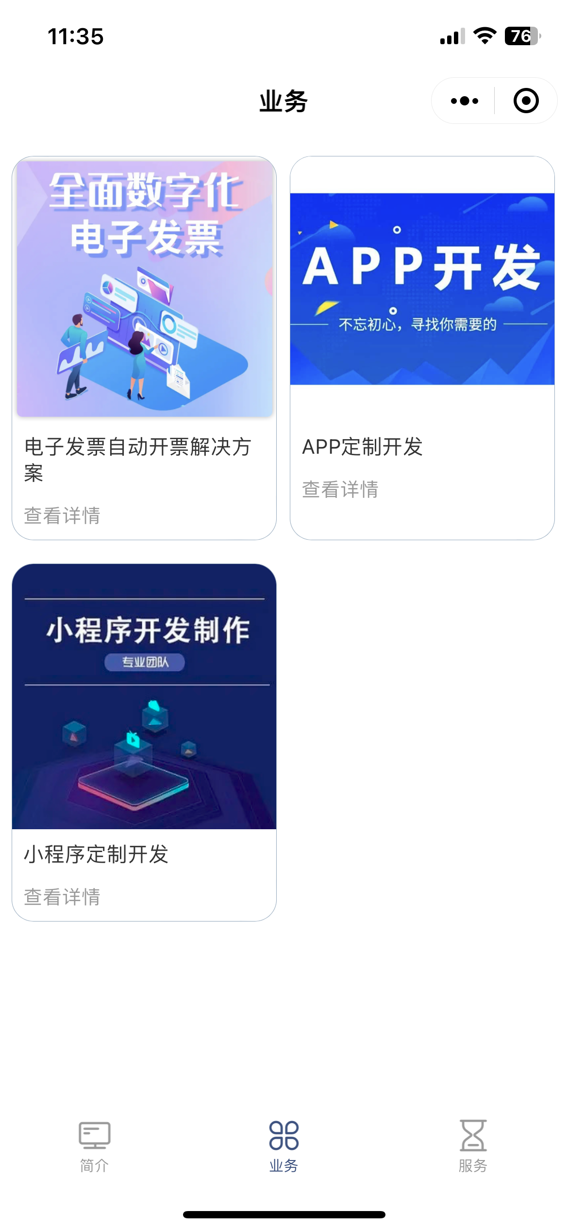 详细的展示了企业的全部业务,可分类展示,按照类目展示相关内容,进入到详情中,即可查看到业务的具体细节。