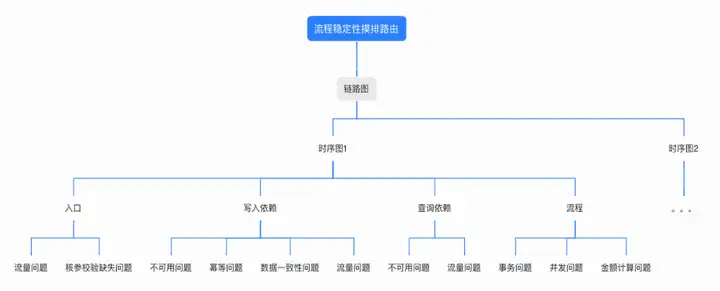 经过前俩步的推导,找到了核心链路中的关键节点,接下来只需要根据关键点的类型,路由到可能出现的问题进行重点排查。调用入口出要注意流量问题、核参校验问题、幂等问题;写入依赖需要注意不可用问题、幂等问题、数据一致性问题等;流程过程中要注意事务问题、并发逻辑问题以及会带来资损的金额计算问题等。