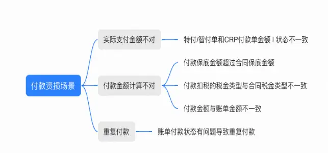 以我们自身的业务场景为例,版权资产的付款是优酷内容引入的资金链出口,容易产生资损场景。资损场景主要实际支付金额不对、付款金额计算不对、重复付款三个场景。