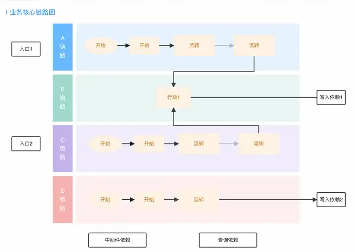 根据推导我们找到了核心链路,转化成业务的核心链路图,图中要重点产出:
