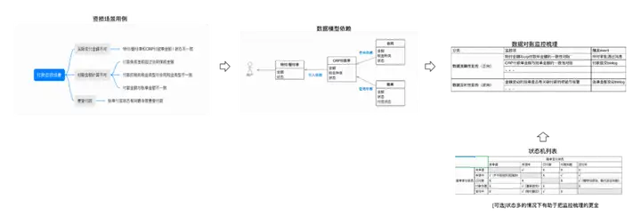 数据对账是为了发现信息和资金流转过程中的数据不一致问题,但业务单据的字段少则几十多则上百,到底应该加哪些字段的监控,对账的触发点应该怎么设置?还是三张图推导:场景用例图、数据模型依赖图、状态机列表