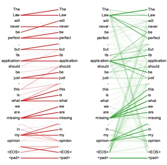 这是自注意力机制的可视化图像。它就像教室里的一群朋友,有些人与某些人的联系更紧密,有些人与任何人的联系都不太紧密。
