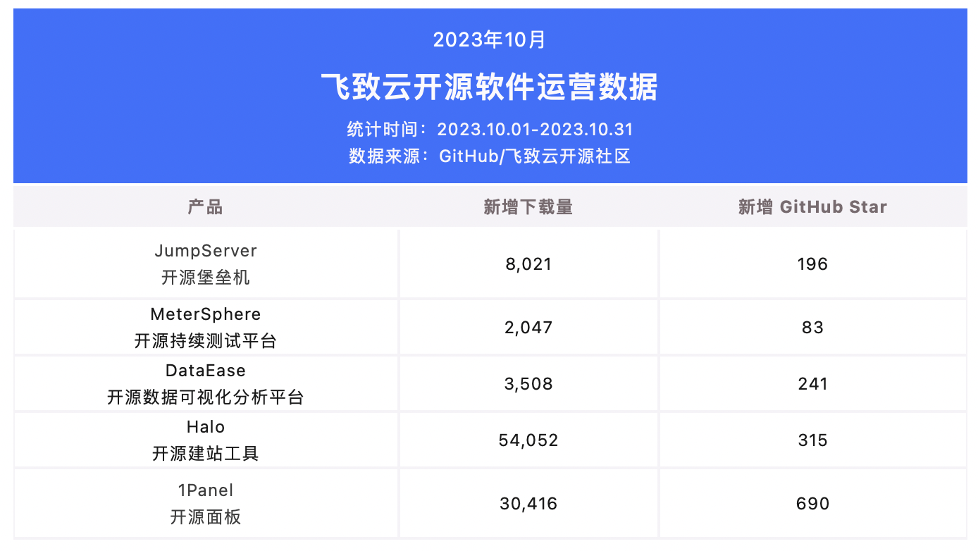 2023年10月飞致云开源软件运营数据概览(统计时间为2023.10.1~2023.10.31):