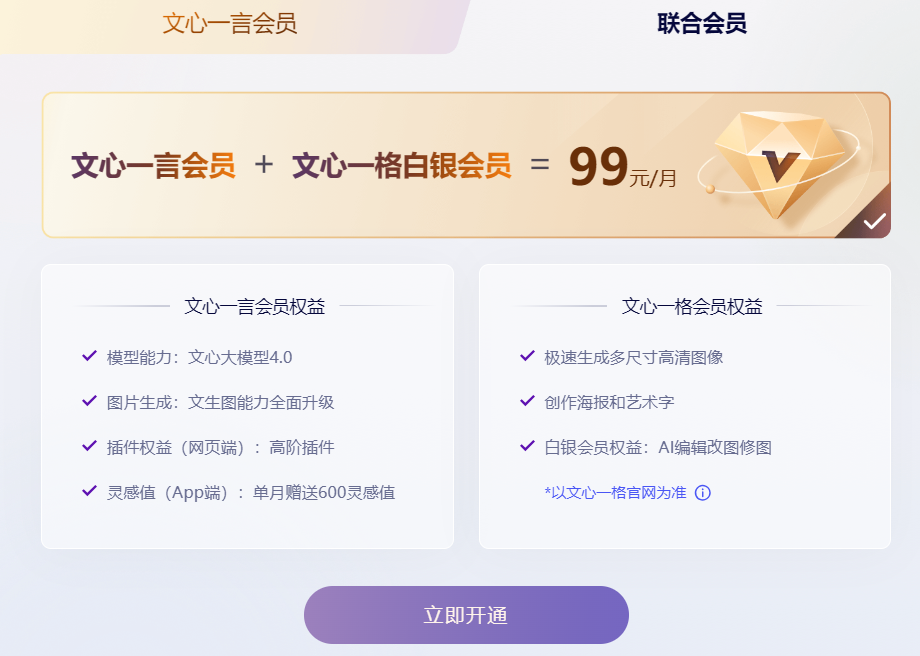 文心一格会员权益: