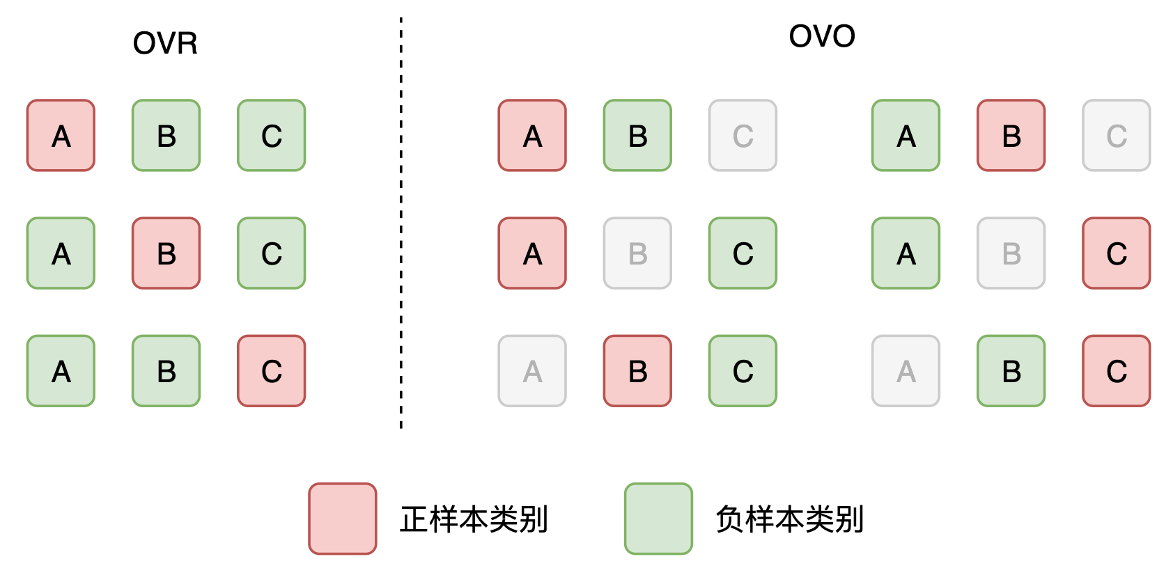 现在考虑多分类的情况,假设类别数为\(C\)。