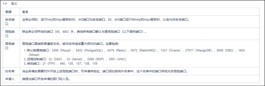 规范内容可包含端口申请规范,端口使用规范,端口关闭规范以及明确的处罚规定。