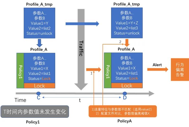 偏离,指同一服务下某一时间切片的配置文件与已上锁的配置文件的参数值对比,发生超过阈值的变化