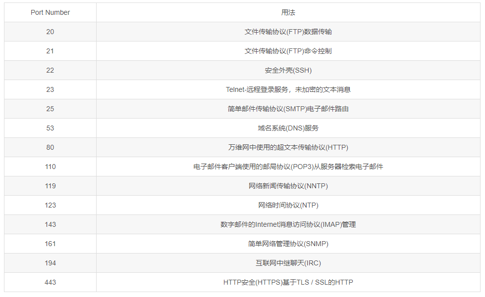 知名端口即众所周知的端口号,范围从0到1023,这些端口号一般固定分配给一些服务。比如21端口分配给FTP服务,25端口分配给SMTP(简单邮件传输协议)服务,80端口分配给HTTP服务,135端口分配给RPC(远程过程调用)服务等等。