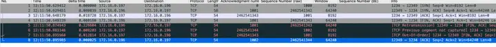 - 先收到20623(seq=4417),但此时期望收到的seq为4416,所以被标记为[previous segment not captured]