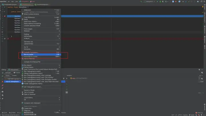 直接 Run to Cursor (强烈建议快捷键操作,更加丝滑 option + F9),就可以直接断点到我们的 12 行。