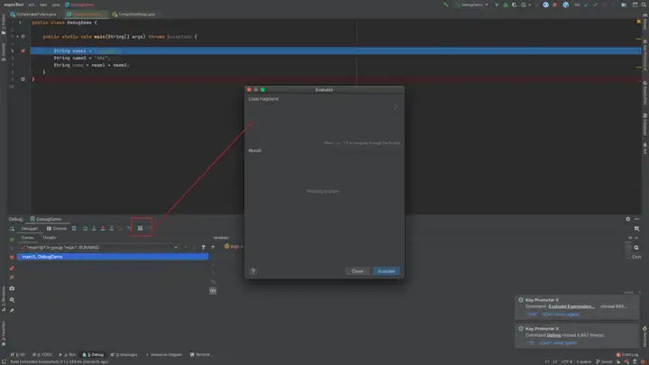 快捷键:alt + d 唤起执行窗口 -> option + F9 定位光标处 -> option + command + f8 快速执行表达式