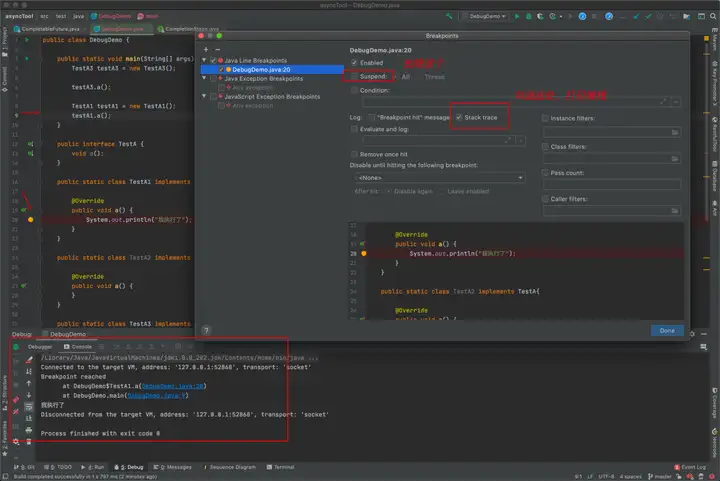 通常情况下,我们断点的时候,会卡住当前线程。假设我们在主预发或者公用环境进行debug,就老感觉背后有人在骂我,谁又在debug,环境怎么又不通了!所以当我们想要愉快在公用环境debug的时候要: