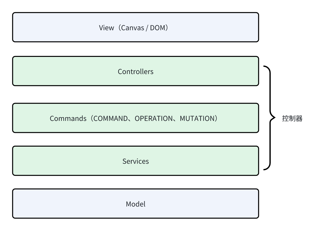 在传统的MVC架构中,视图和模型层往往职责比较明晰,而控制器承担了主要的业务逻辑,和管理视图层、模型层的任务,往往会比较臃肿,那么 univer 是如何避免控制器臃肿的呢?在 Univer 中,控制器(MVC中的控制器)进一步拆解为 Controllers(Univer中狭义的控制器)、 Commands 和 Services。同时在控制器中,几乎包含了 univer 所有的业务逻辑,他们各司其职,保证了 univer 应用的正常运行