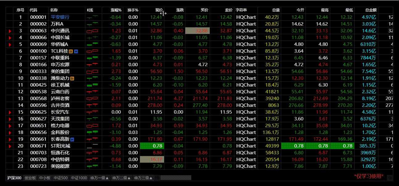 HQChart 是国内第 1 个基于传统 PC 股票客户端软件 (C++) 移植到 js/py 平台的一个项目,包含 K 线图图形库及麦语法 (分析家语法) 指标执行器.
