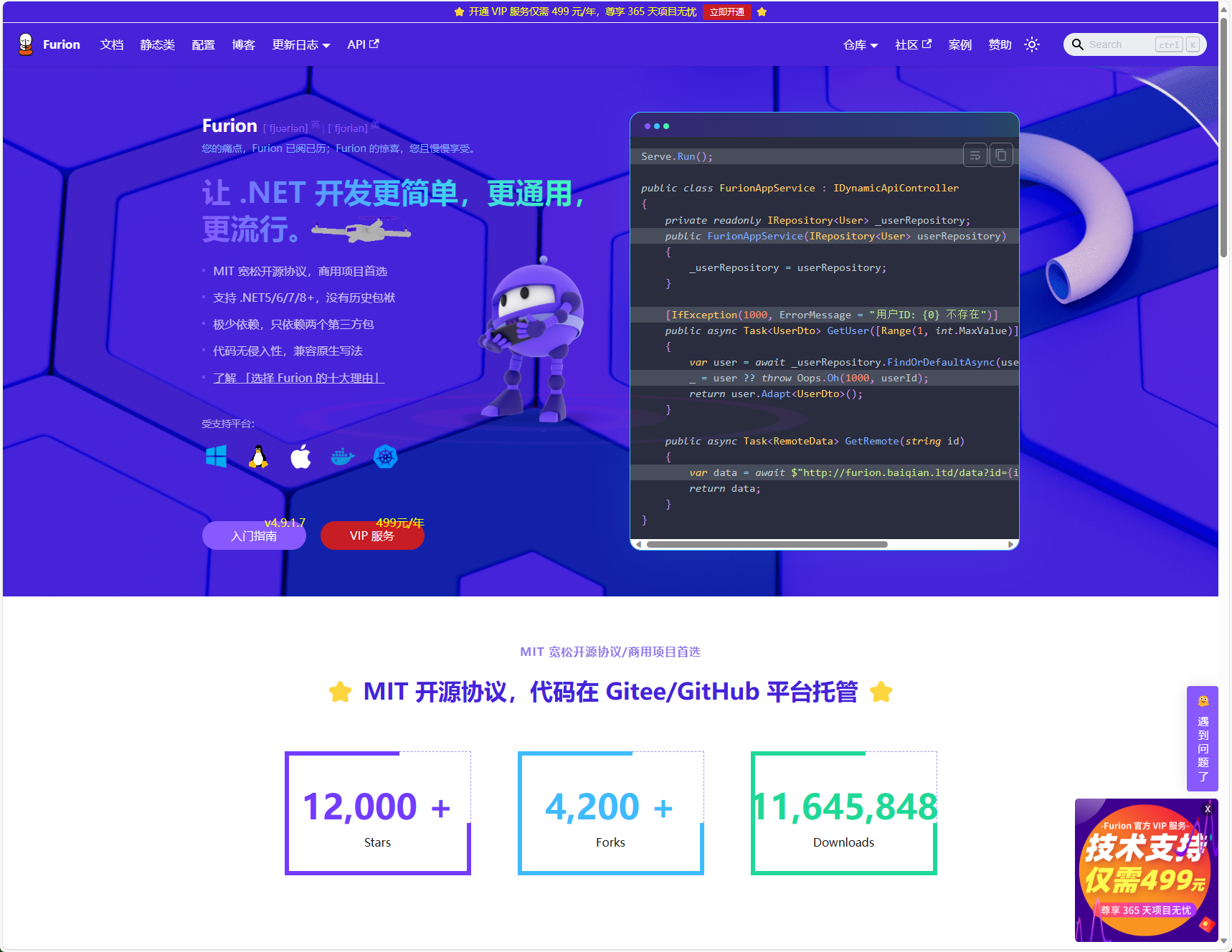 - Gitee:https://gitee.com/dotnetchina/Furion