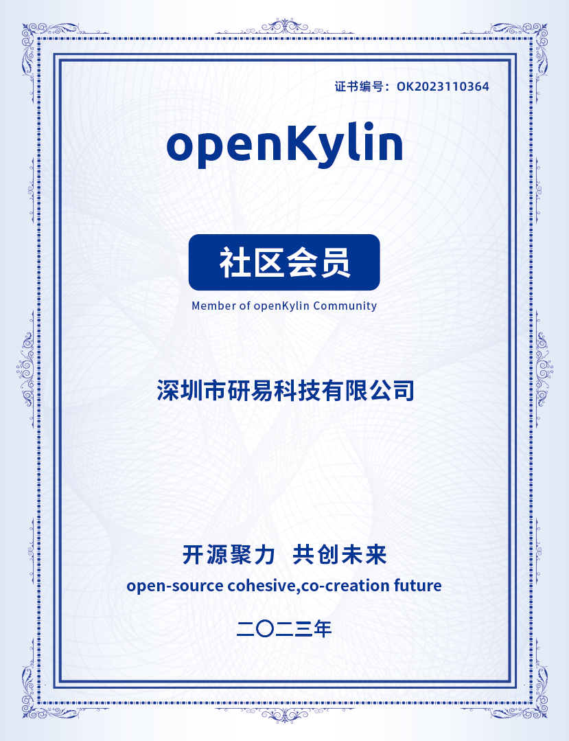 近日,深圳市研易科技有限公司(以下简称”研易科技“)签署了openKylin社区 CLA(Contributor License Agreement 贡献者许可协议),正式加入openKylin开源社区。