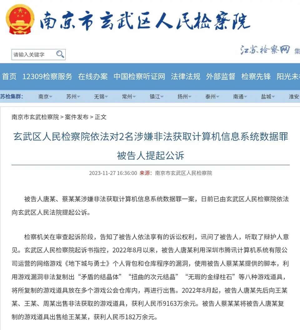 两名玩家利用 DNF 漏洞获利近 1 亿元人民币,已被公诉