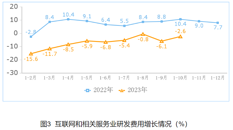 附注:1.规模以上互联网和相关服务企业口径由上年互联网和相关服务收入500万元以上调整为2000万元及以上,文中所有同比增速均按可比口径计算。自2023年10月起,规模以上互联网和相关服务业企业库已按照2022年报更新调整。