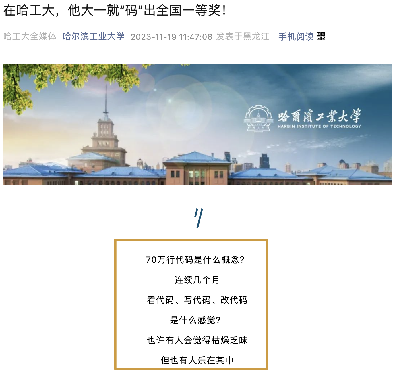 哈尔滨工业大学近日在其公众号发表的一篇文章引起了不小争议。