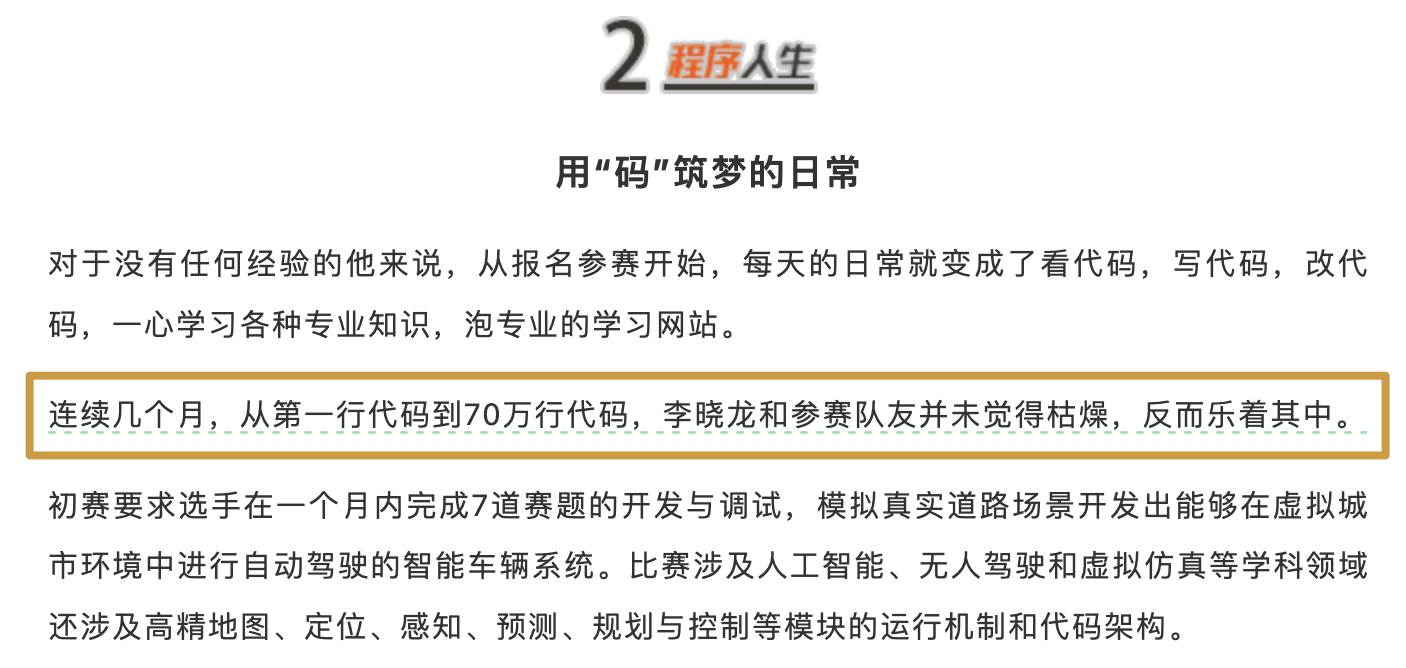 据了解,该比赛涉及人工智能、无人驾驶 和虚拟仿真等学科领域,还涉及高精地图、定位、感知 预测、规划与控制等模块的运行机制和代码架构。