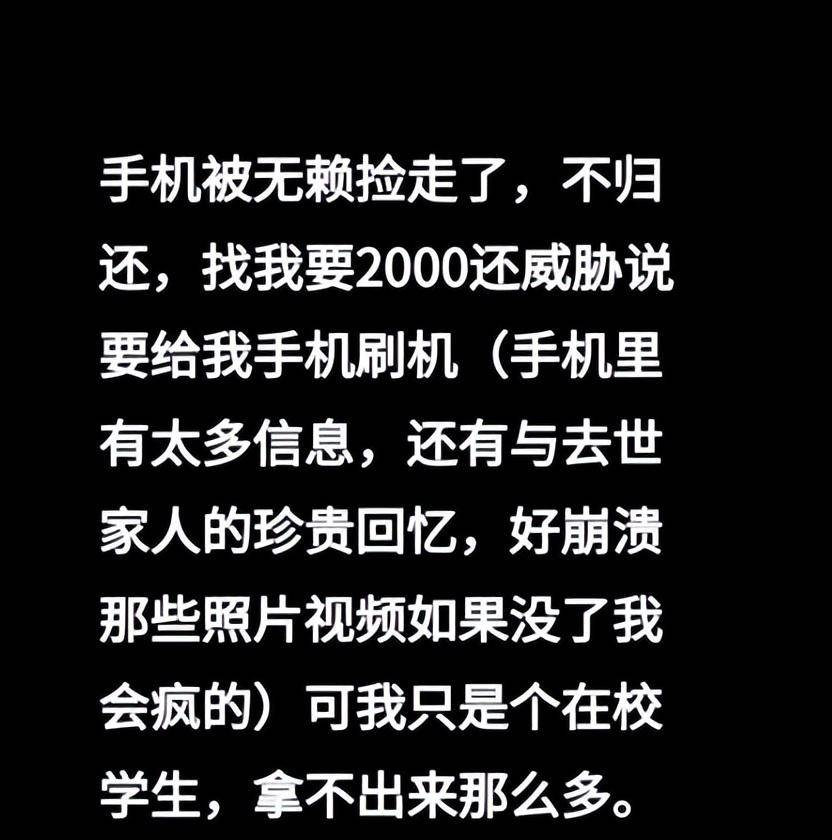近日,安徽合肥一男子捡到女大学生手机后索要千元,还称“不给钱就刷机”,此事引发网友热议。