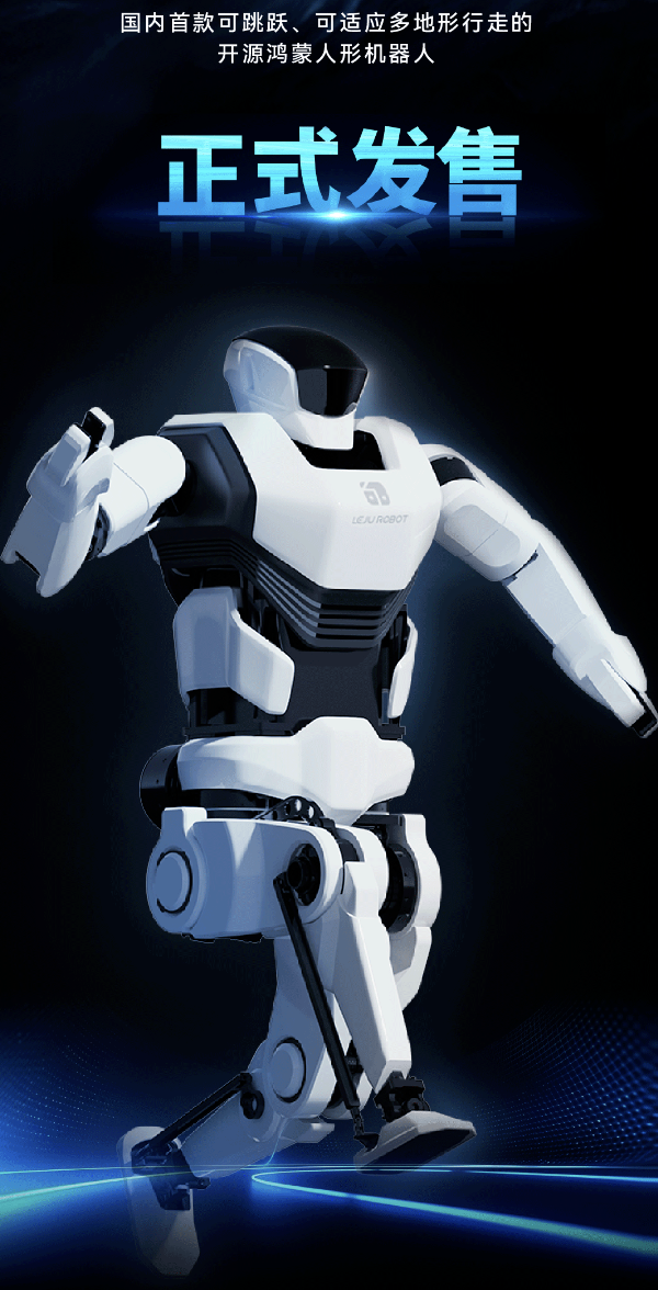 乐聚机器人今日发布了一款人形机器人——「夸父」,并称其是“国内首款可跳跃、可适应多地形行走的开源鸿蒙人形机器人”。