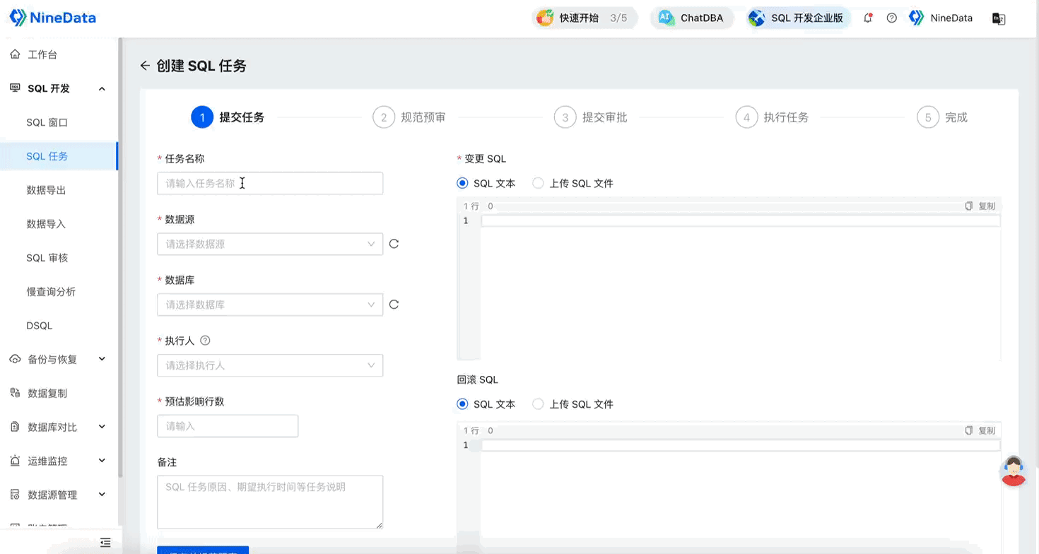 在此向大家隆重推荐一款数据库管理产品:NineData SQL 任务。