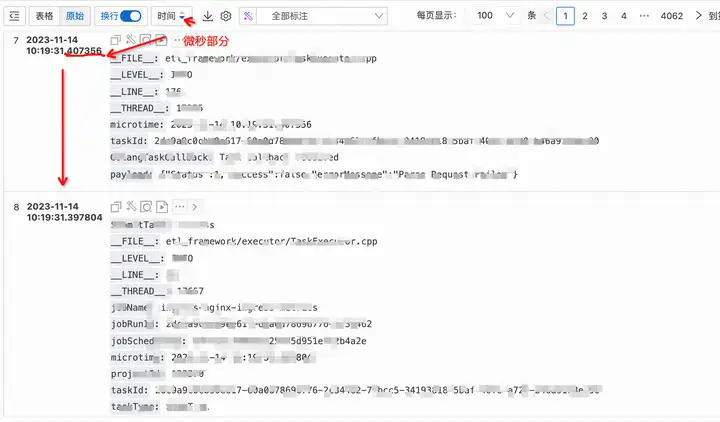下面是python sdk写入带有nano时间部分的日志样例,用户可以根据具体业务需要,解析日志中正确的nano时间部分传入。后面查询的时候使用的是秒和纳秒部分两者拼接出来作为一个整体进行全局排序的。