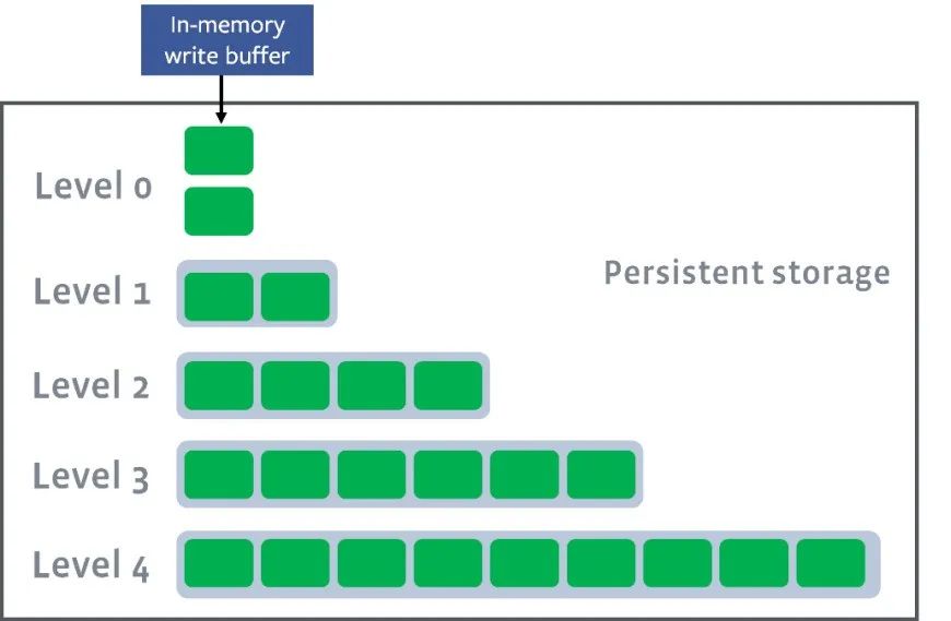RocksDB 通过在写入数据时先存入内存来保证写入高性能,内存写满后便会将内存的数据转移到磁盘,写入磁盘时保持 key 有序来提升磁盘查询的效率(类似于二分查找),并且对磁盘中的数据进行分层,热点数据所在的层级越低,冷数据存储的层级越高。