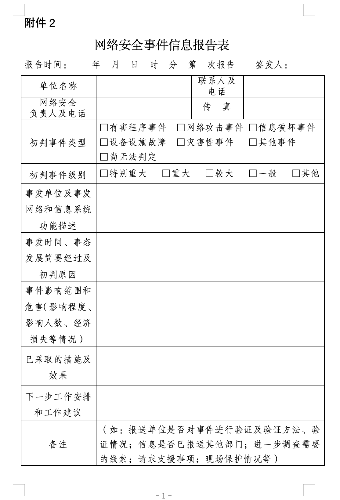 运营者应当按照《网络安全事件信息报告表》报告事件,至少包括下列内容: