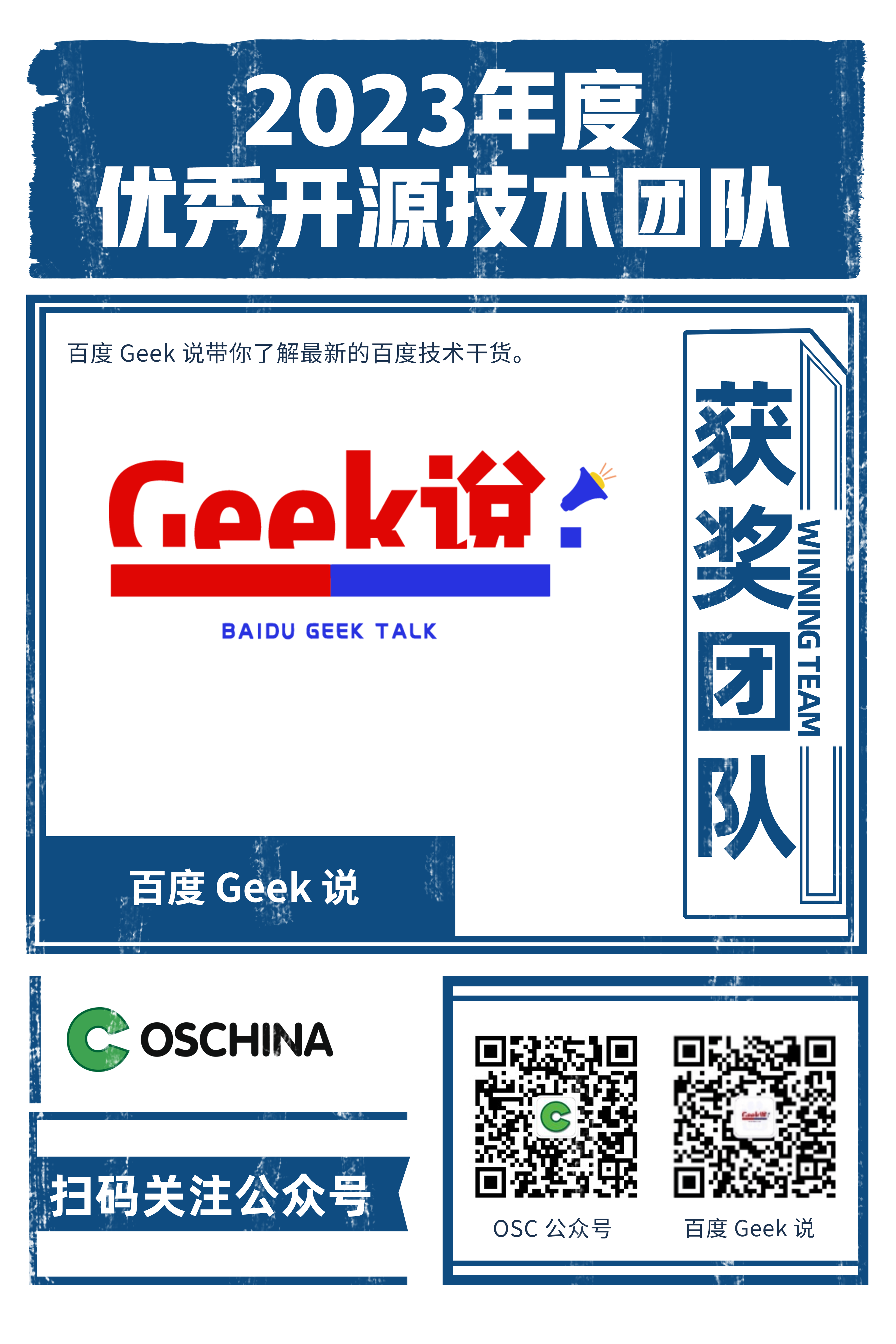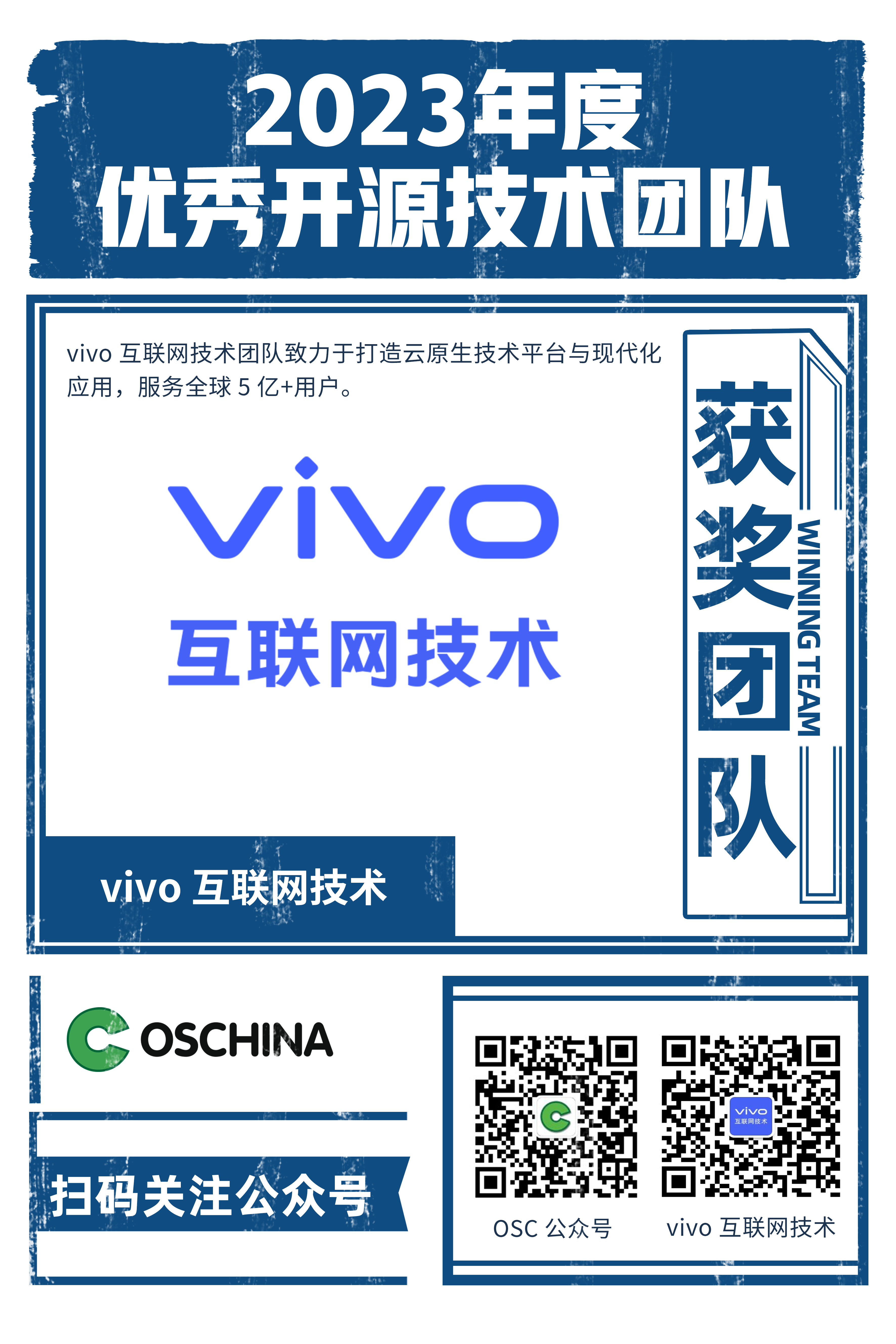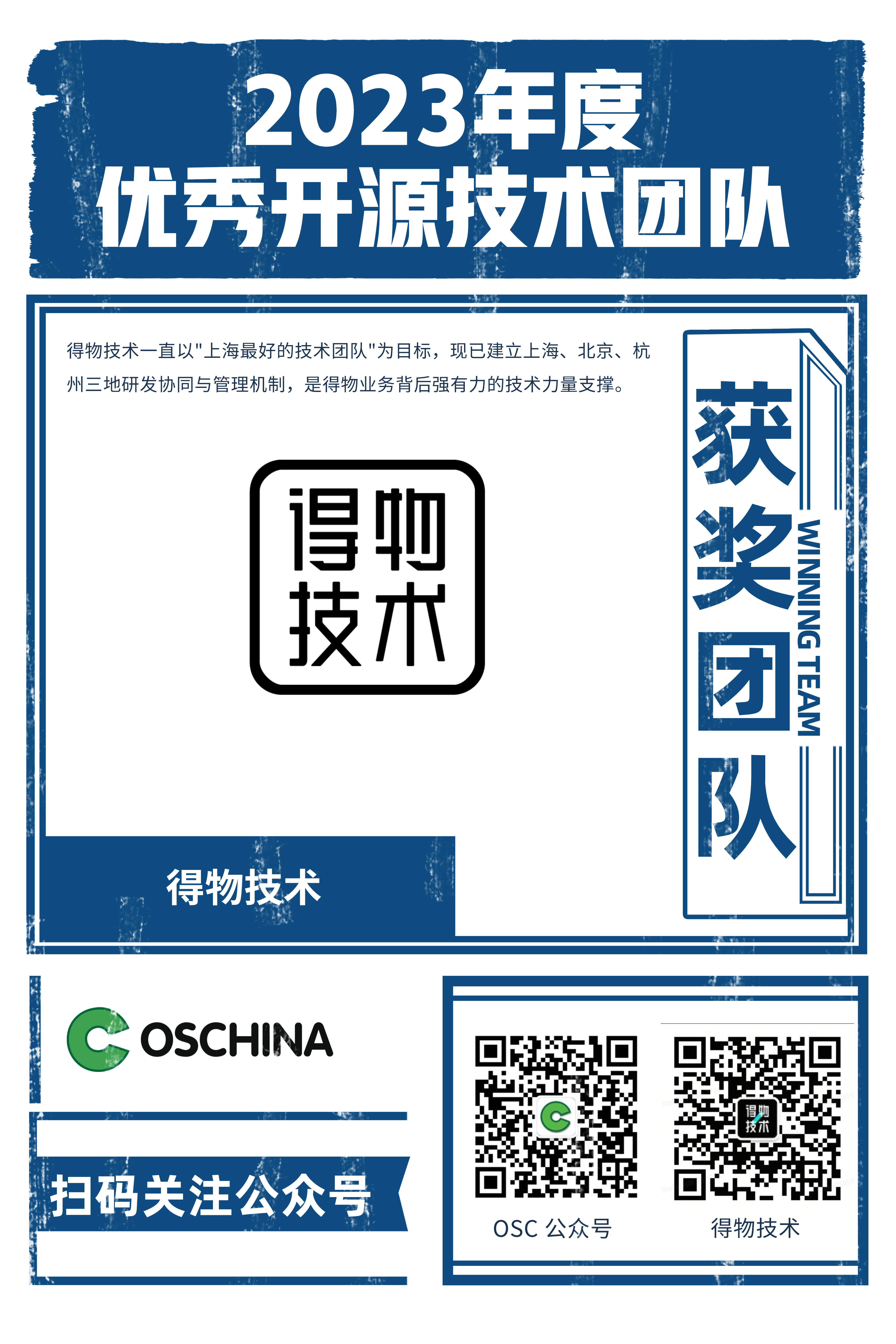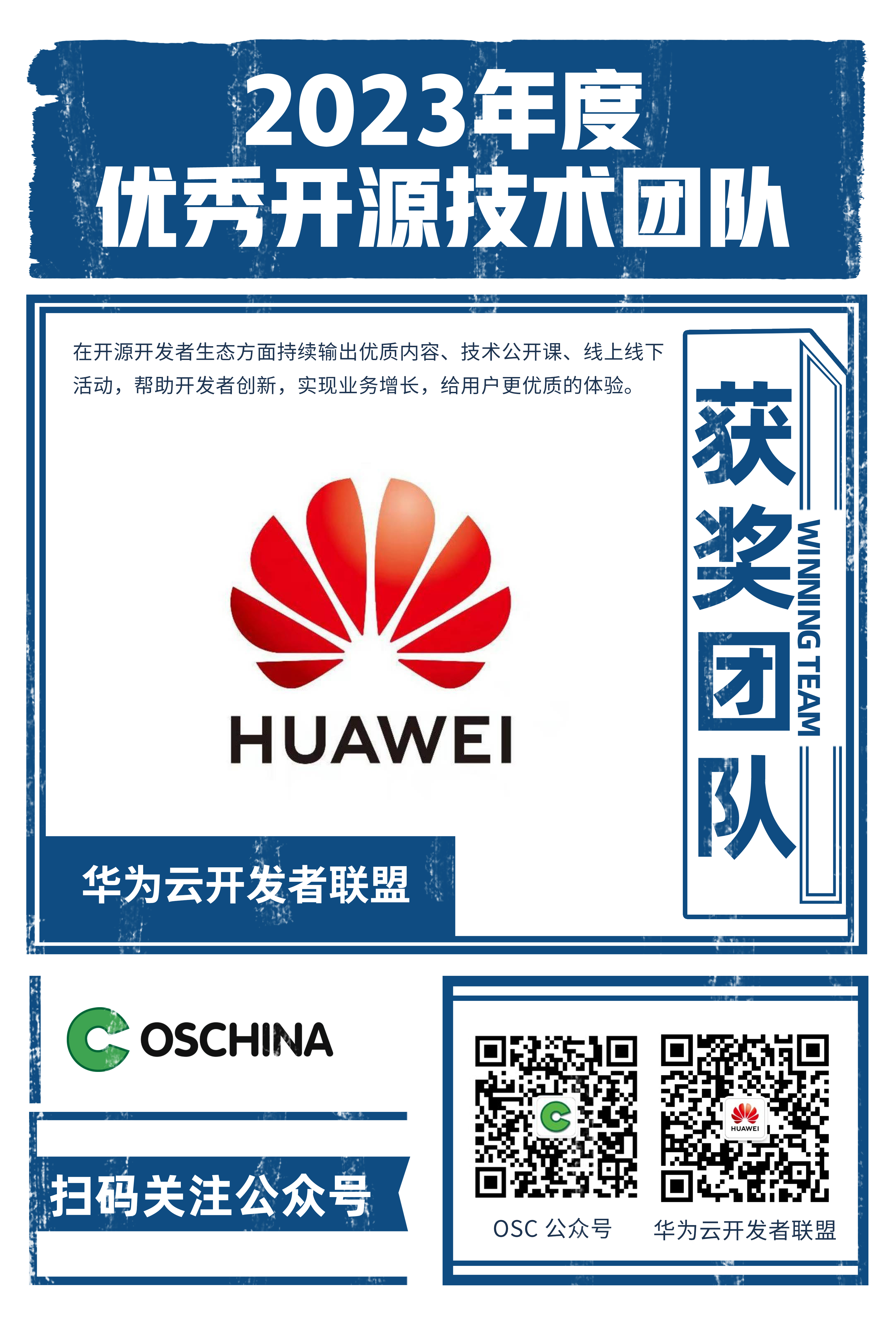 2023 年,我们综合了 OSCHINA 平台上各大认证官方技术团队、开源社区帐号年度发表的内容深度及广度、开展各种活动运营影响力等多方面的表现,颁发 OSCHINA“2023 年度优秀开源技术团队” 奖项,以奖励大家的创造与贡献,一起让中国的开源生态更加繁荣与发达。这也是 OSCHINA 推出此奖项的第三年,欢迎有更多的技术团队、开源项目社区加入到 OSCHINA 的社区交流当中来。