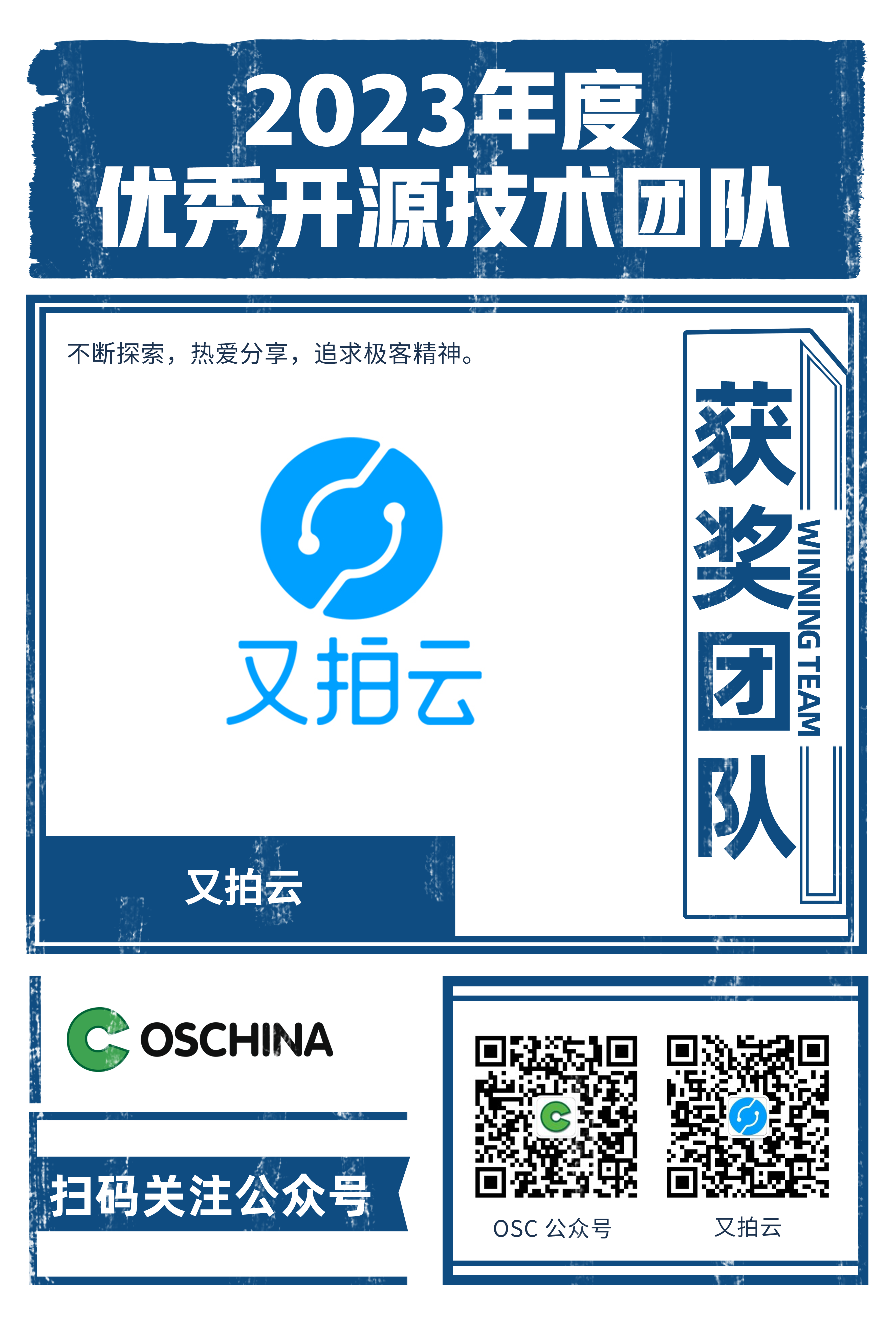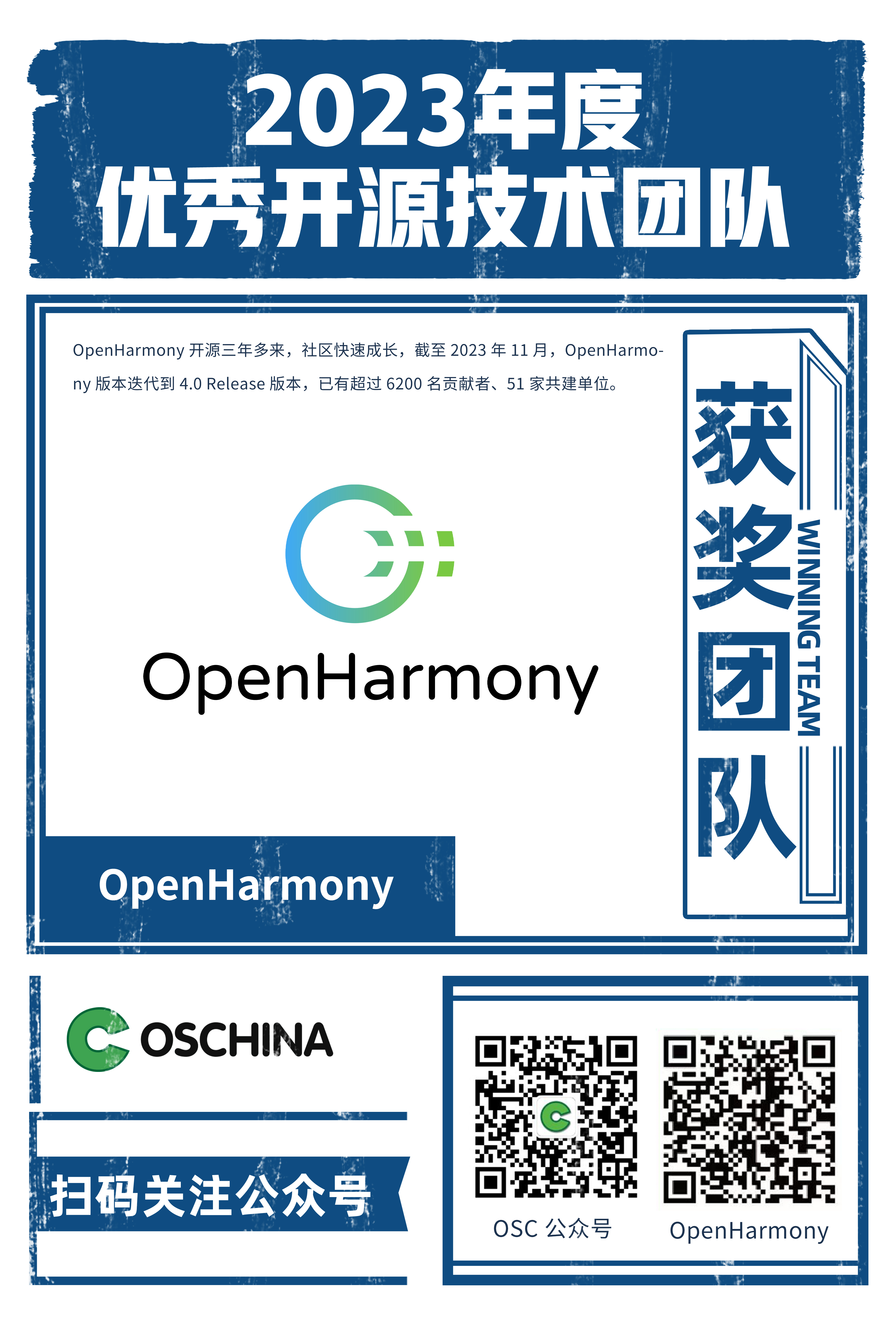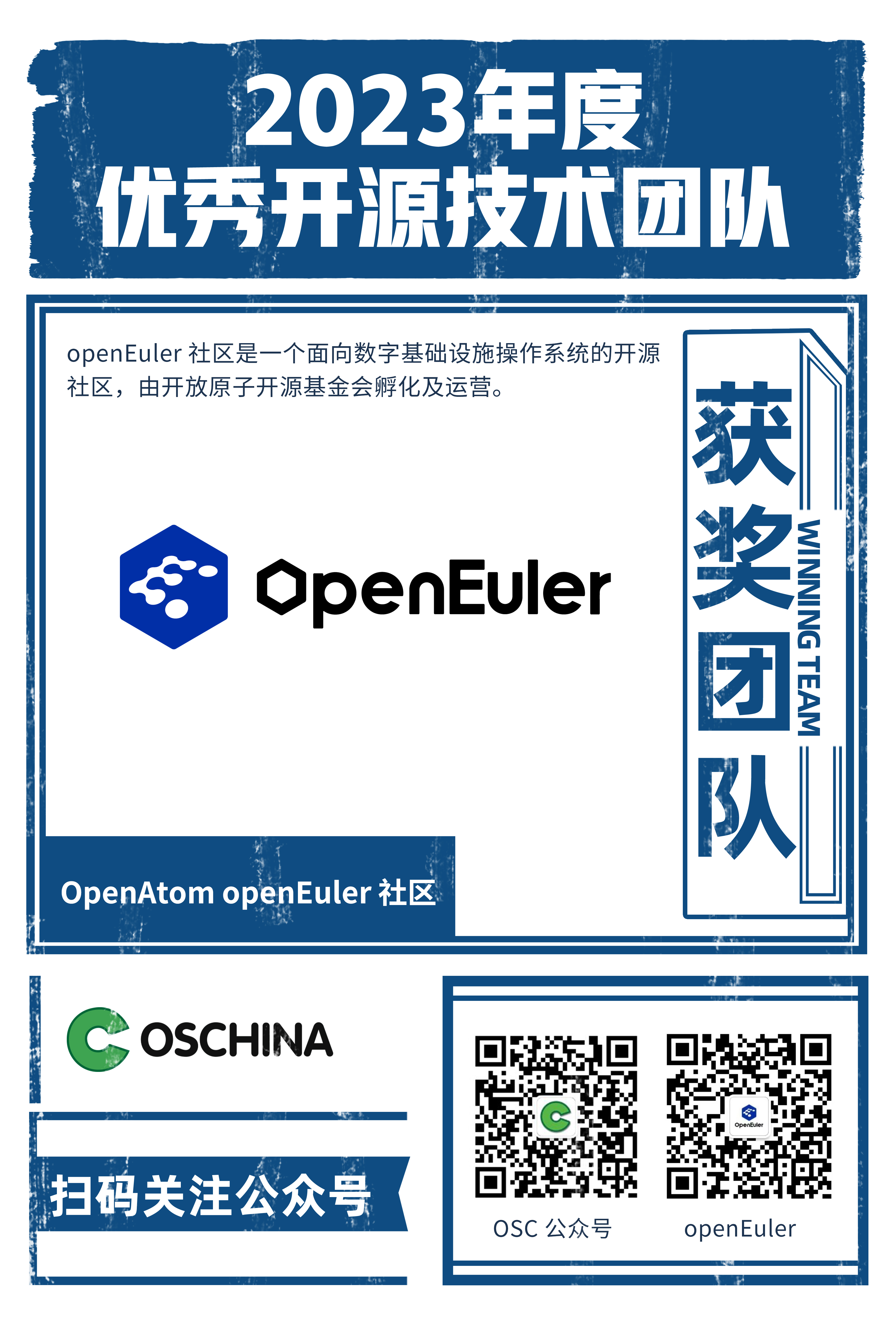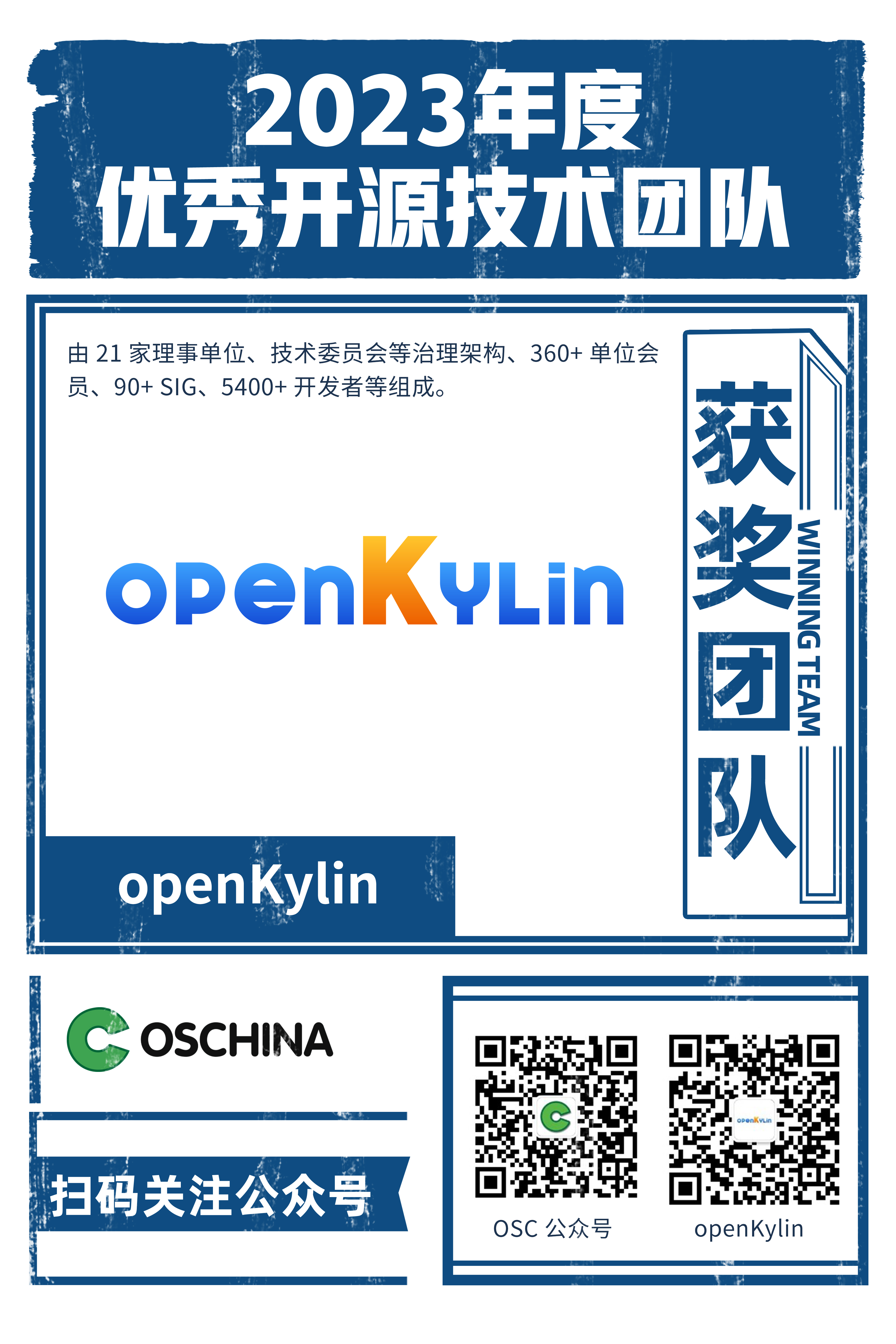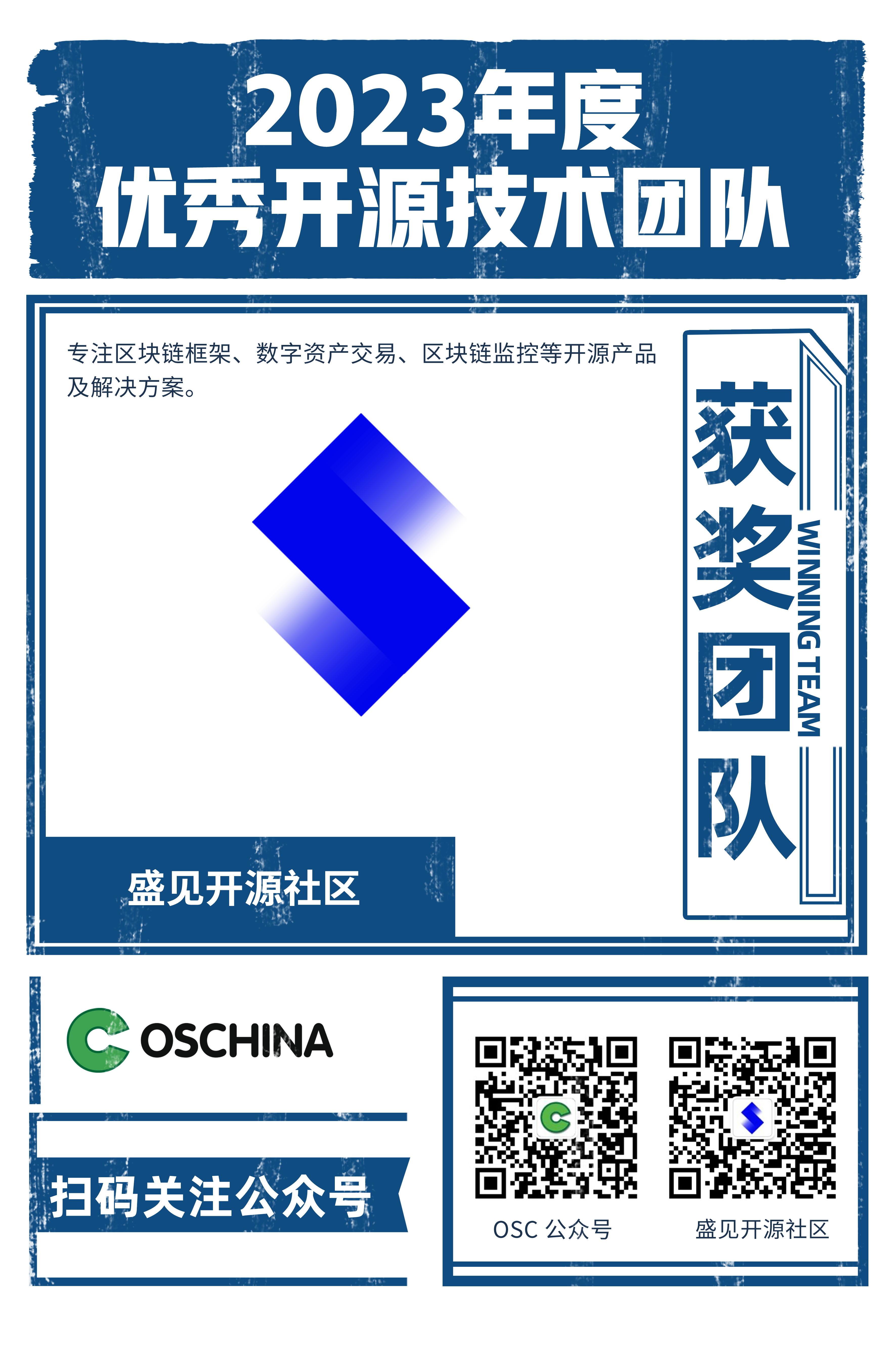 2023 年,我们综合了 OSCHINA 平台上各大认证官方技术团队、开源社区帐号年度发表的内容深度及广度、开展各种活动运营影响力等多方面的表现,颁发 OSCHINA“2023 年度优秀开源技术团队” 奖项,以奖励大家的创造与贡献,一起让中国的开源生态更加繁荣与发达。这也是 OSCHINA 推出此奖项的第三年,欢迎有更多的技术团队、开源项目社区加入到 OSCHINA 的社区交流当中来。