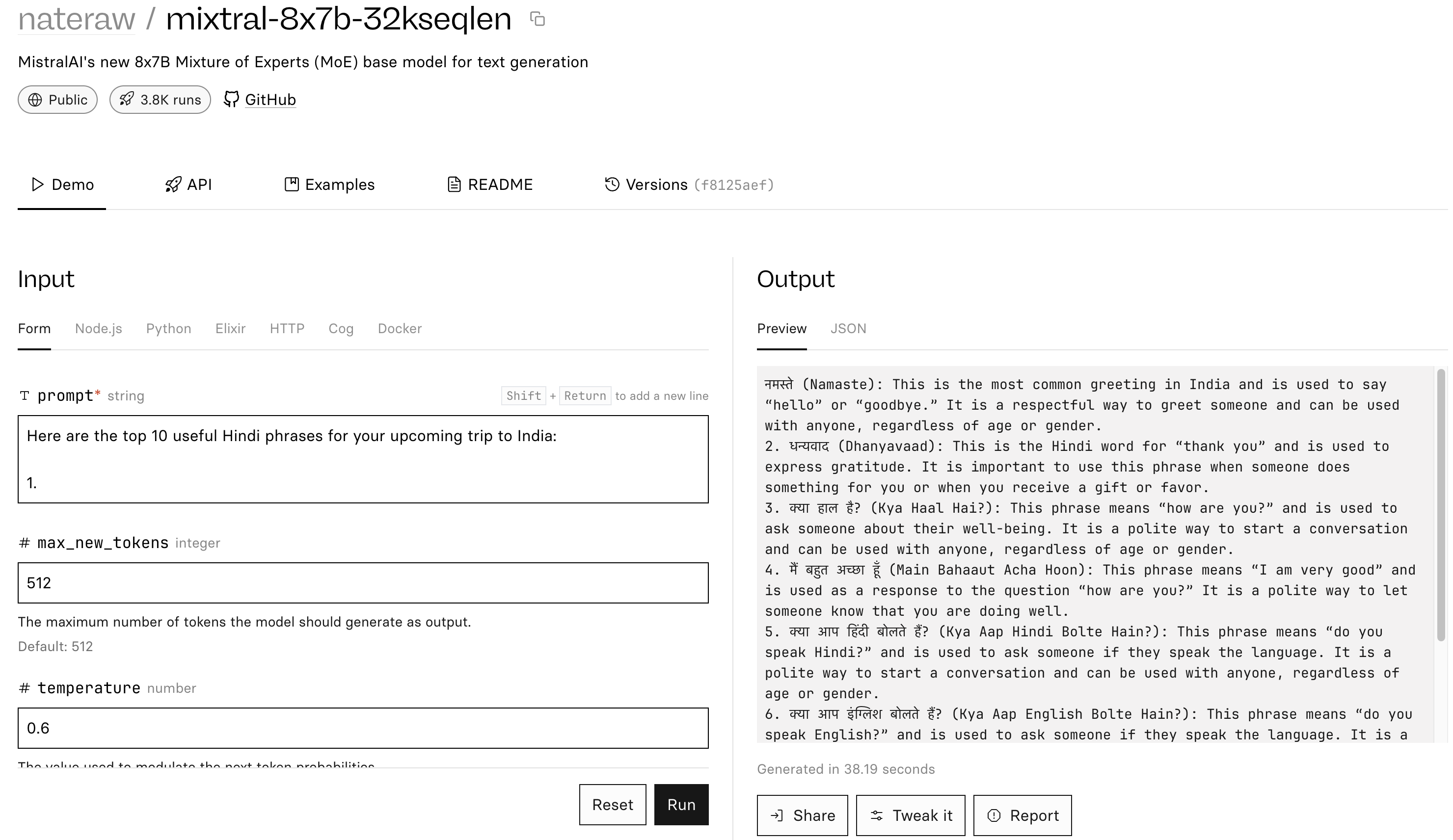- https://replicate.com/nateraw/mixtral-8x7b-32kseqlen