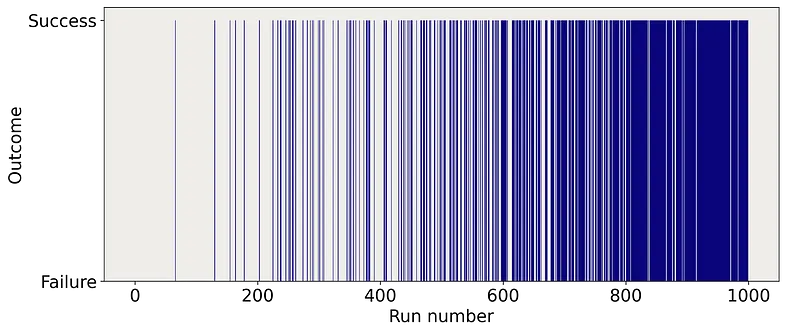 哇,又是100%的成功率!并没有降低模型的性能。😌这种方法在这个例子中的好处可能不太明显,但我们的模型不再是一成不变的,而是更加灵活。它学会了从 S 方块到 G 方块的不同路径(动作序列),而不是像之前的方法,只学习到一条路径。 agent 进行更多的探索可能会降低性能,但对于训练能够适应新环境的 agent 来说这是必要的。