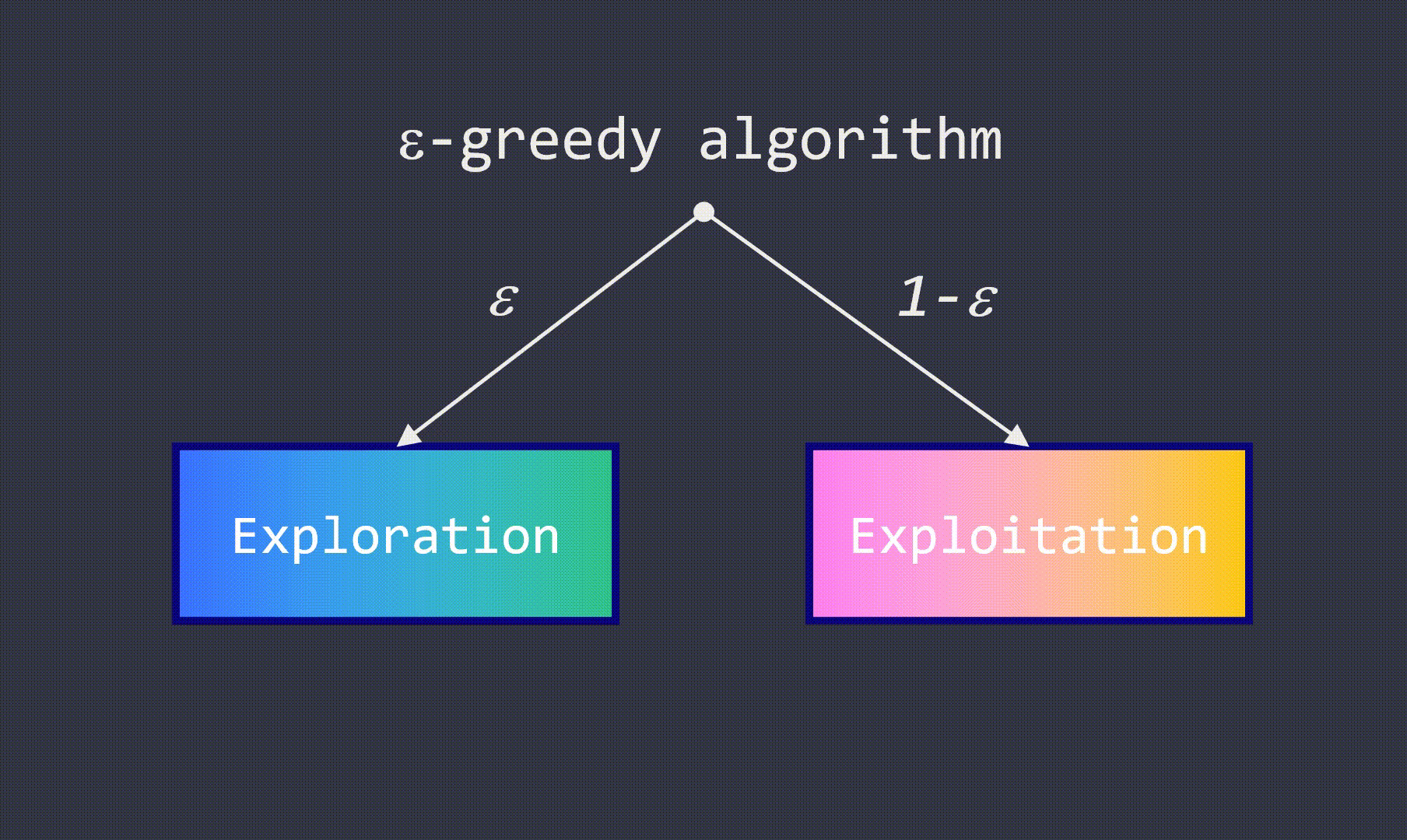 - 选择一种随机动作,尝试找到更好的动作(探索是否有更优的动作)。
