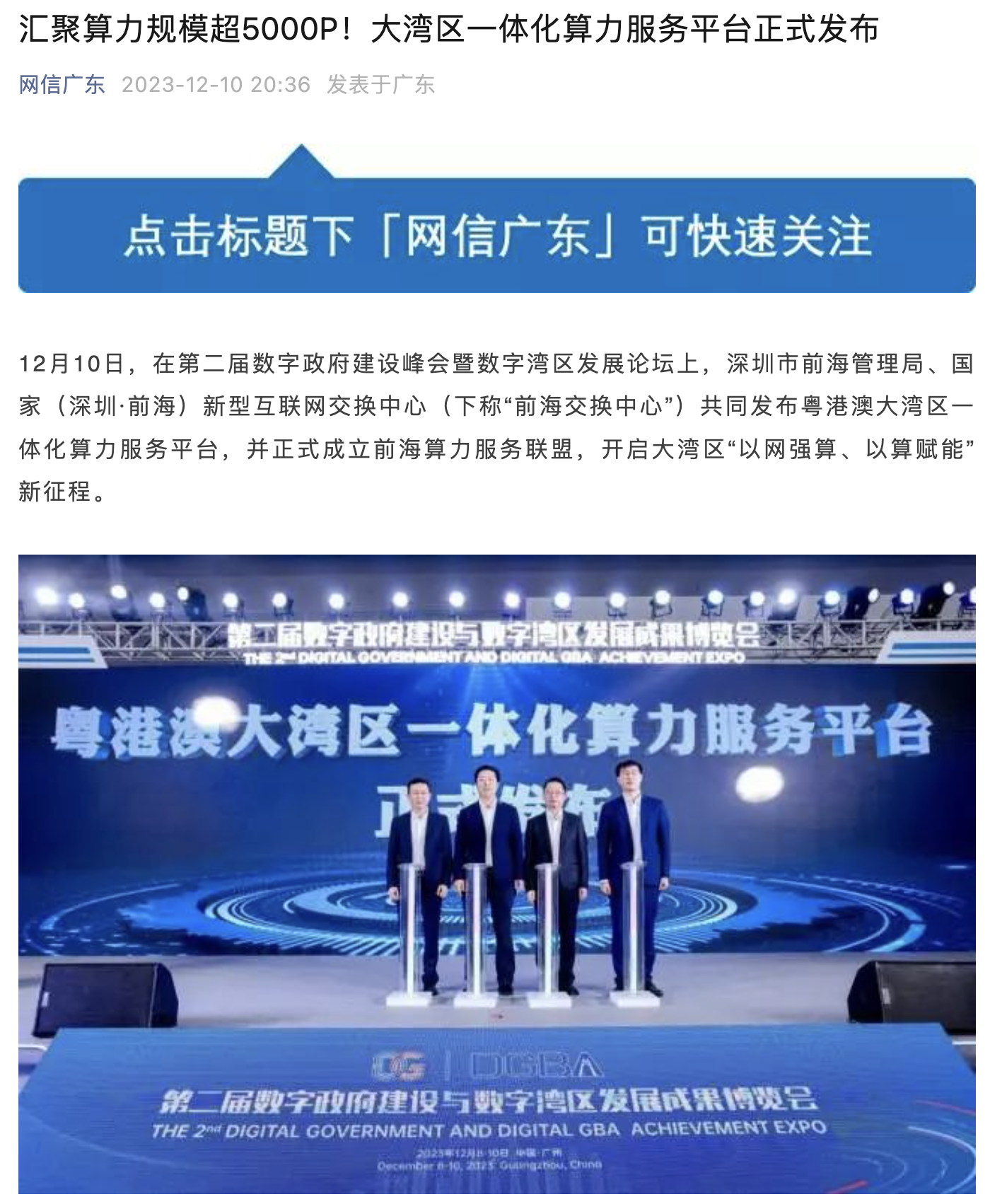 大湾区一体化算力服务平台正式发布,算力规模超 5000P
