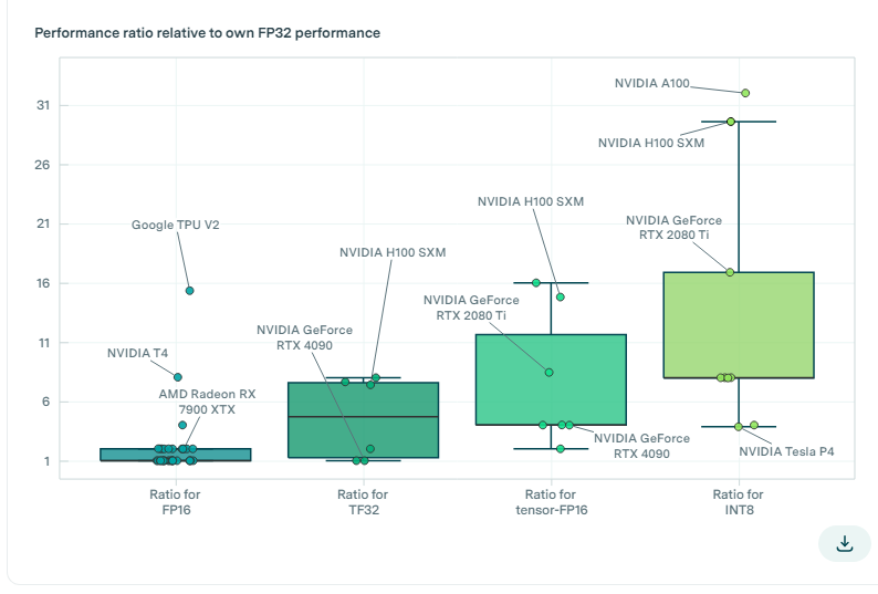 因此,仅凭FP32的性价比便会错误地认定Radeon优于RTX 4090,而实际上RTX 4090在实际ML工作负载中更为经济实惠。这突显了仅依赖FP32性价比分析,不考虑ML特定架构和数值表示的整体评估的风险。