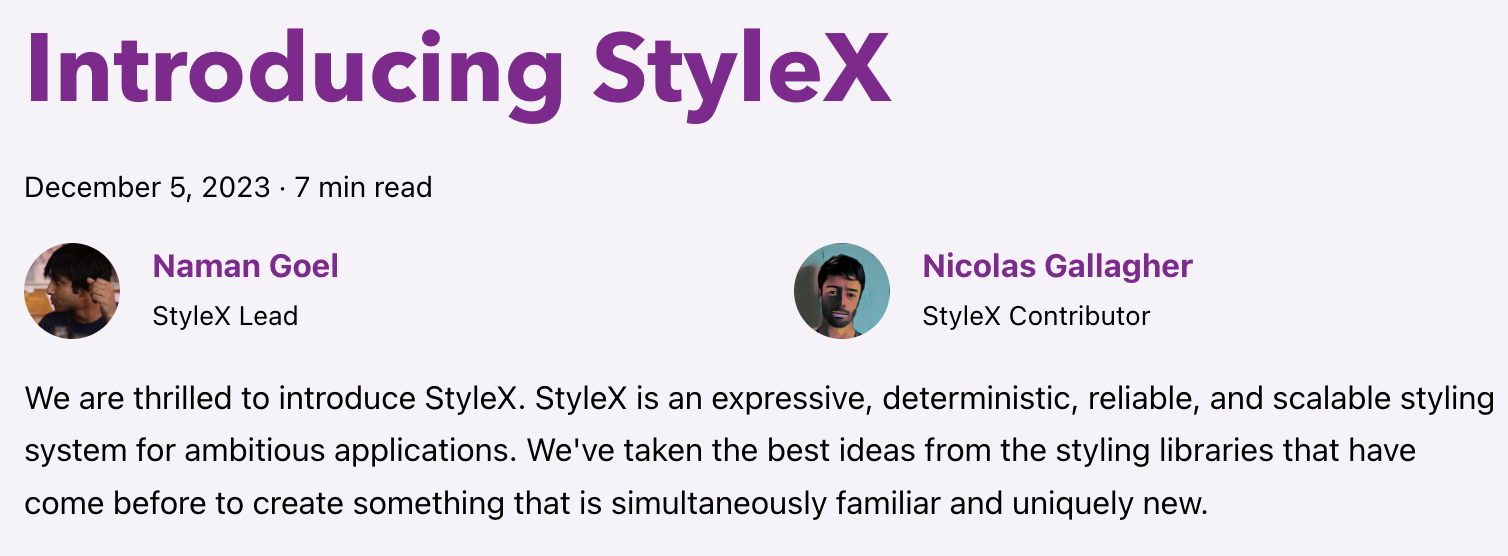 官方介绍道,StyleX 是一个富有表现力、具有确定性、可靠且可扩展的样式系统。它通过使用编译时 (compile-time) 工具融合了静态 CSS 的性能和可扩展性。