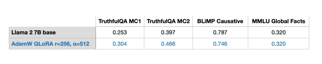 然而,如果我们将LoRA的r增加到256,这是我在后续实验中做过的,那么Adam和SGD优化器之间的差异就会变得更加显著: