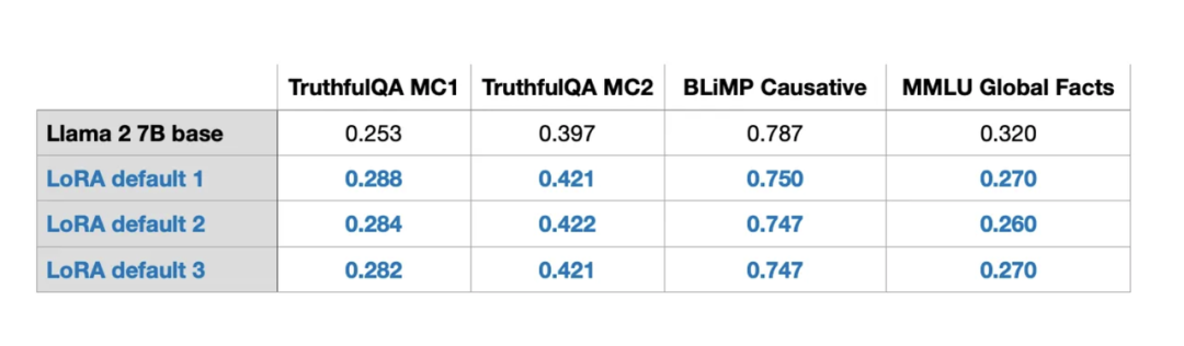 通过对LoRA进行多次实验,我发现,尽管在语言模型训练中或者在GPU上训练模型时存在固有随机性,但基准结果却在不同运行中表现出了惊人的一致性。这为进一步的比较研究提供了良好基础。