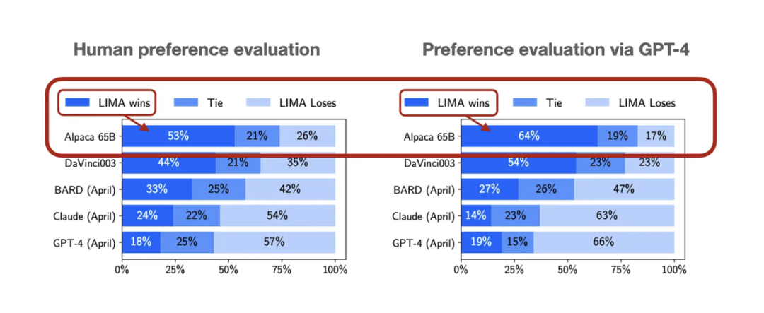 根据论文《LIMA: Less Is More for Alignment》,使用LIMA微调的65B Llama模型在性能上明显优于在Alpaca上微调的65B Llama模型。