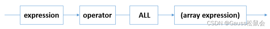 ALL运算符用于判断一个数组是否满足给定数组中的所有条件。其中,operator是比较运算符,如=、<、>等。如果左侧的数组满足右侧数组中的所有条件,则返回true;否则返回false。