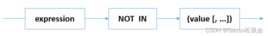 2、expression NOT IN (value [, ...]) 右侧括号中的是一个表达式列表。左侧表达式的结果与表达式列表的内容进行比较。如果在列表中的内容没有符合左侧表达式结果的内容,则NOT IN的结果为true。如果有符合的内容,则NOT IN的结果为false。