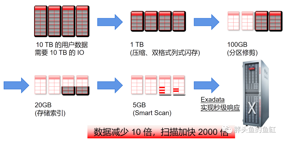 在磁盘性能>传输性能的当下,我仍然能听到,就对比Oracle Exadata的基于X86服务器的分布式存储来说,专用存储设备更好。Oracle Exadata存储层做了啥,Exadata Storage Software充分利用了硬件特性与软件结合,在存储内部就实现数据的过滤筛选,减少网络传输层面的带宽需求,让NVMe SSD、PMEM这些高性能磁盘设备发挥真正的作用而不是去撑爆网络。就专用存储而言,无法突破使用服务器的传输瓶颈,即使IO再强劲,出口带宽再大,也只能突增使用存储设备的服务器数量;而对于单机服务器配置大量高性能磁盘来说,特别是用于分布式数据库中的跨分片操作,只要数据量稍微大一些,网络就很难扛得住(不一定是磁盘引起的也可以是内存),这也是为啥分布式数据库建议把关联数据放在一个分片内(这得从数据库层面干掉多少需求或者说是一些需求就不能用分布式数据库实现)。