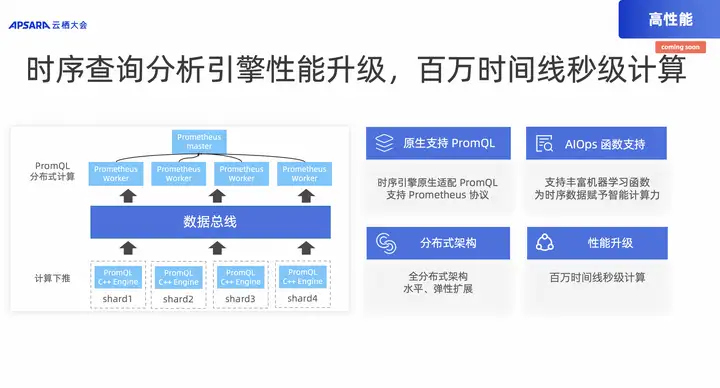 - 性能升级:更智能的聚合写入、全局 Cache、PromQL 分布式计算、计算下推、内置降采样