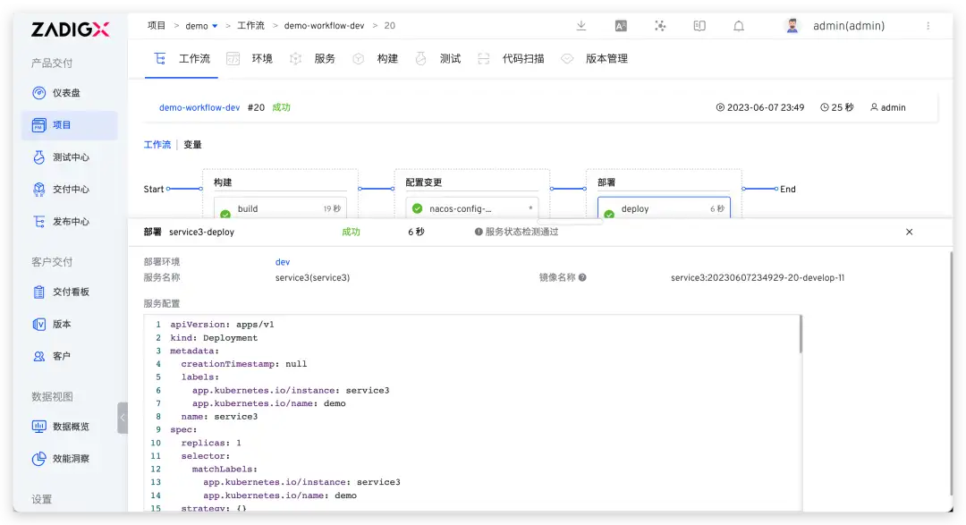 另外,鉴于生产发布的严肃性,通常需要相关责任人对发布内容进行审批。审批人员可以通过 Zadig 工作流任务信息详细了解本次任务的具体改动,来保障发布内容的正确性和可靠性。