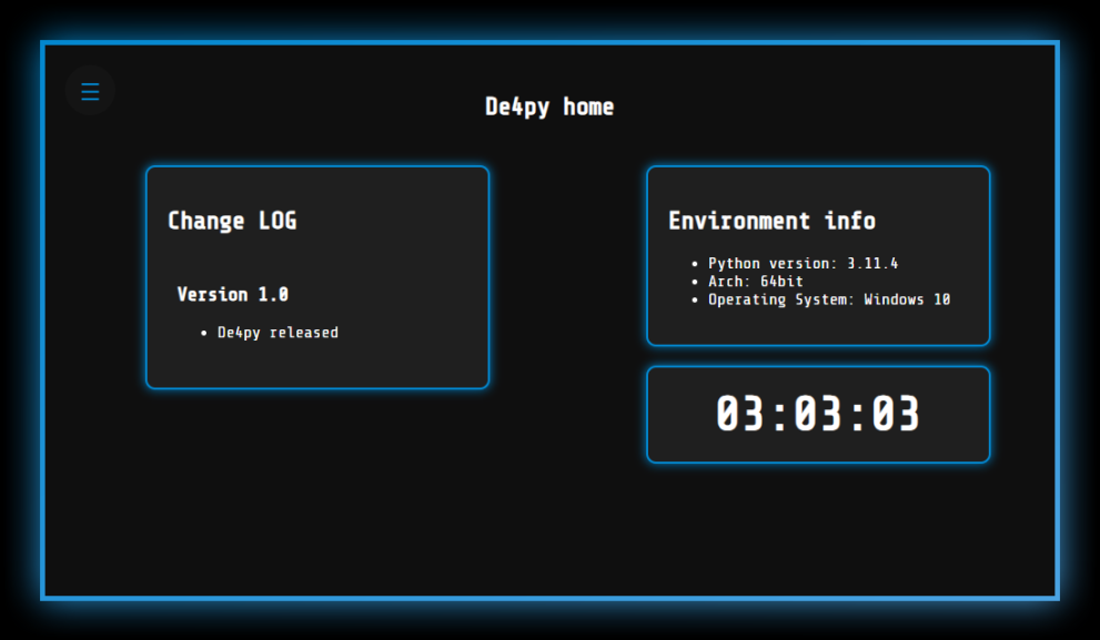 | 反混淆 | De4py 支持一些流行的混淆器,例如:Jawbreaker、BlankOBF、PlusOBF、Wodx、Hyperion、pyobfuscate.com 混淆器 |