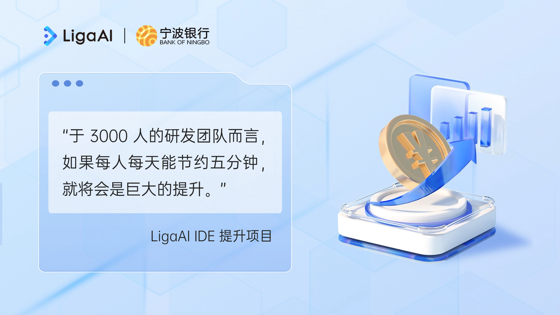 围绕沉浸式、自动化和精细化三个目标,宁波银行与 LigaAI 基于「奋进号」平台,联手打造「LigaAI IDE 提升项目」。 通过减少个人时间浪费、抹平团队协作障碍,为行内开发者打造沉浸式工作体验,以数据驱动赋能研发管理。