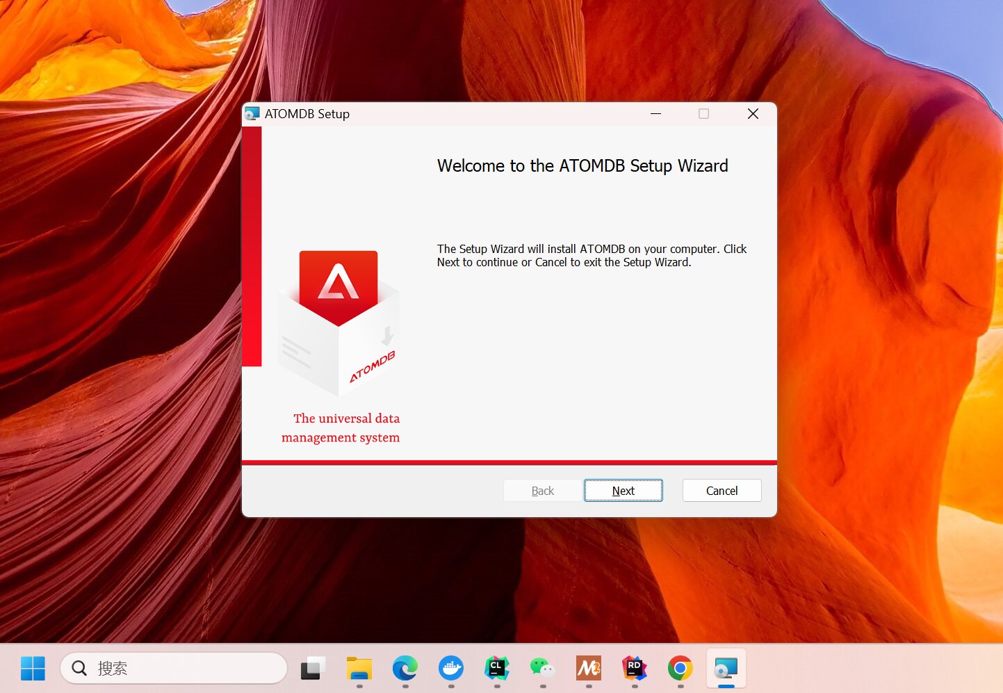 下面我们一睹 Windows 版本的风采吧。首先是 ATOMDB 的安装程序,为了方便大家安装,我们采用了 Windows 系统标准的 msi 安装包格式,双击安装包就能开始安装过程,一直点击下一步就可以完成程序的安装。