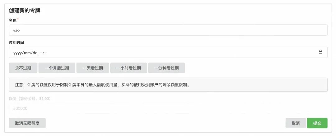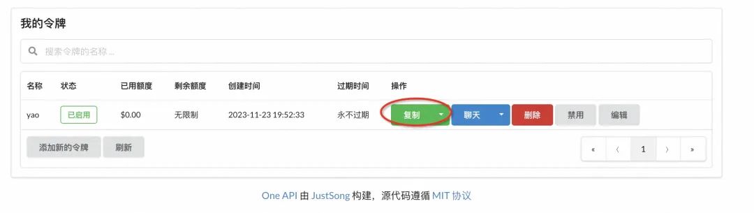 初始登录进去,创建一个新令牌用于权限管控和计费: